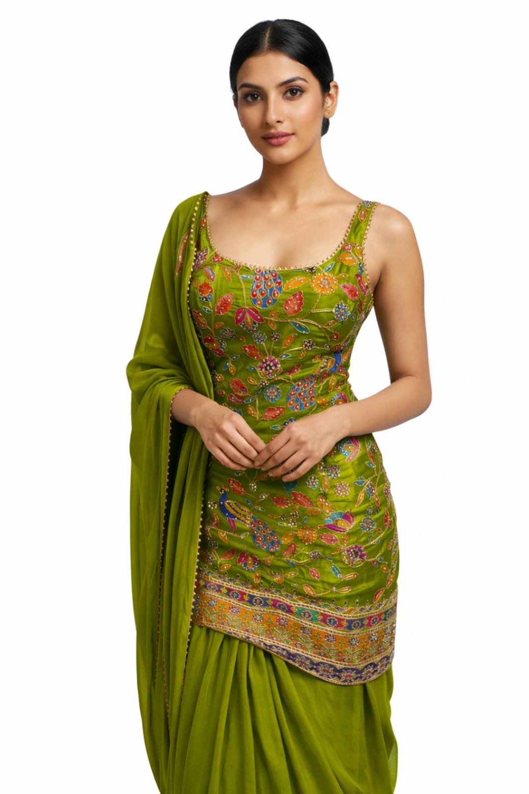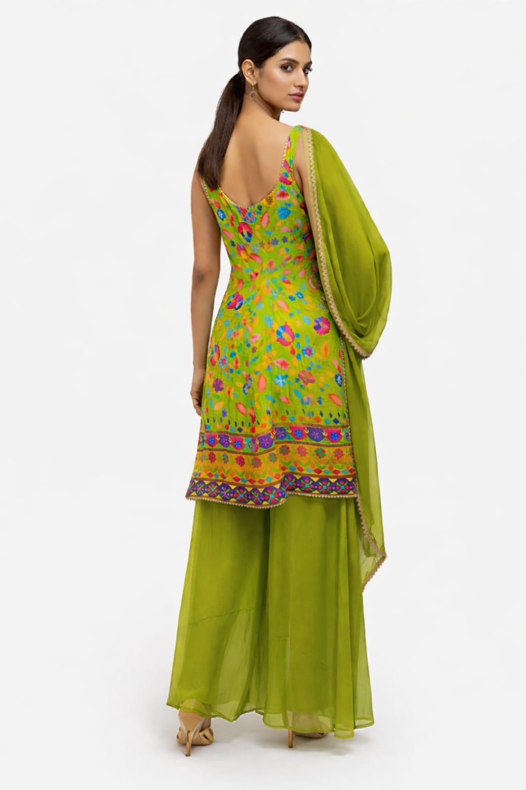 Elevate Your Ethnic Grace Upgrade your style with this stunning Embroidered Palazzo Suit in a refreshing lime green shade. We crafted this piece from premium fabric to ensure a luxurious feel. Therefore, it offers a soft and flowy drape that guarantees exceptional comfort for long hours. You can move effortlessly throughout any event in this breathable outfit. Additionally, the vibrant color adds a modern charm to your ethnic wardrobe. Consequently, it is an ideal choice for women who prioritize both fashion and ease.